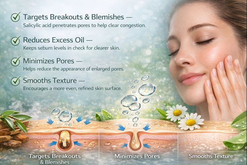 With regular use, skin appears smoother, more balanced, and visibly clearer. Lvyora 2% Salicylic Clarity Serum delivers effective care for a refined, healthy-looking complexion.