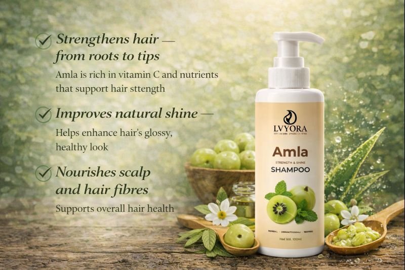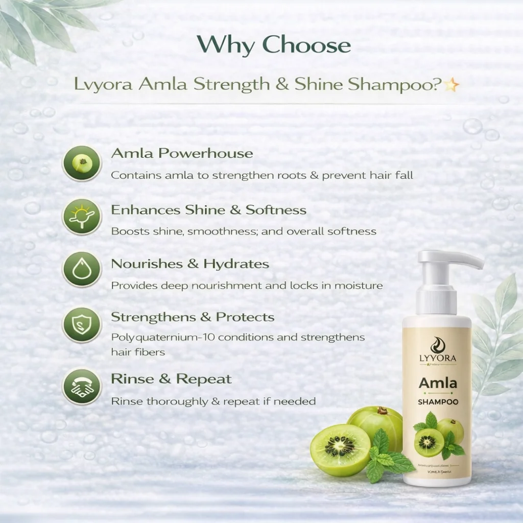 Lvyora Amla Strength & Shine Shampoo is enriched with the natural goodness of amla to nourish the hair roots and strengthen strands from within. It gently cleanses the scalp while supporting healthier, more resilient hair with every wash.