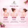 Apply a small amount on wet skin or a loofah, massage gently to create lather, and rinse thoroughly with water.