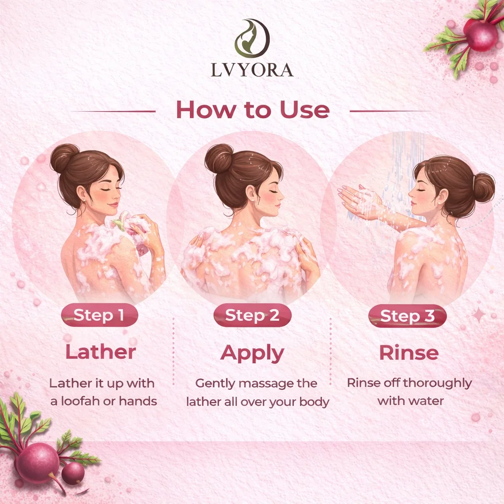 10. How should I use Lvyora Beetroot Glow Body Wash?