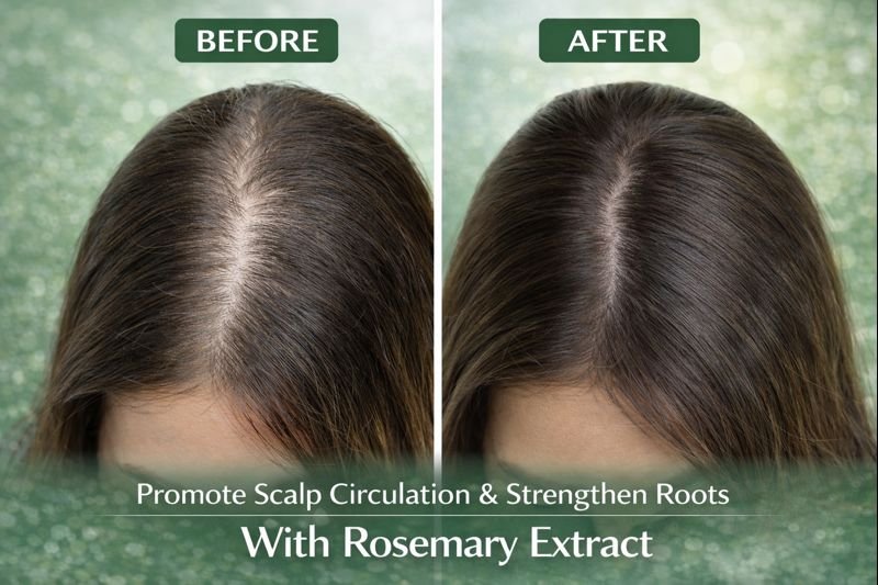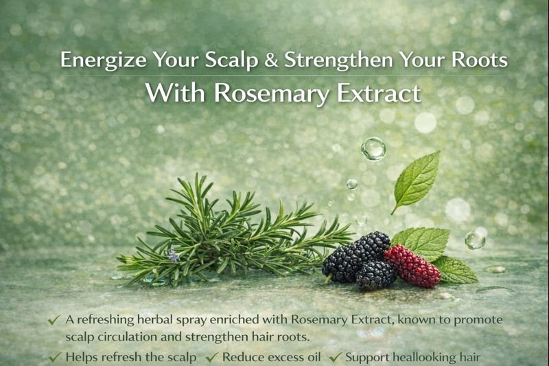 Rosemary is known to improve scalp circulation, support hair growth, reduce dandruff, and strengthen hair follicles.