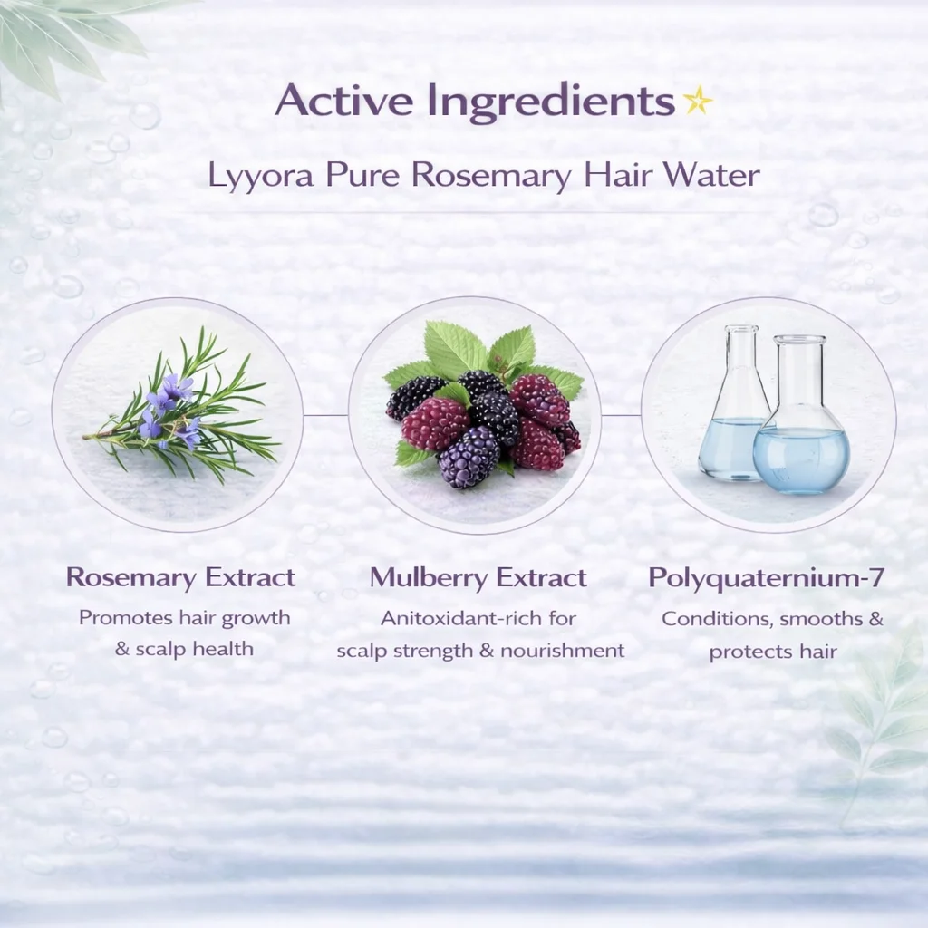 Lvyora Pure Rosemary Hair Water is a lightweight, leave-in hair and scalp mist infused with rosemary to refresh the scalp and support healthy hair growth.