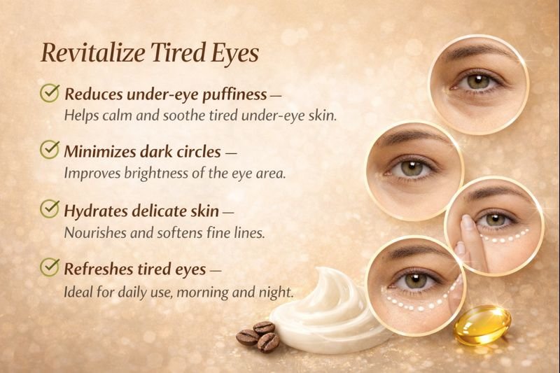 Lvyora Revive Under Eye Cream is a targeted eye-area treatment designed to hydrate, refresh, and improve the appearance of tired-looking eyes.