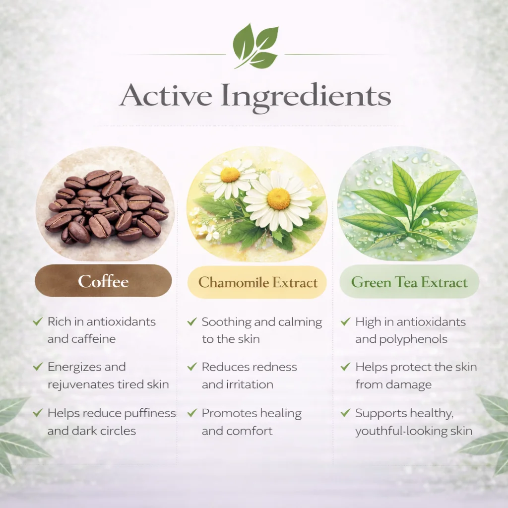 It is suitable for all skin types, especially people dealing with dark circles, puffiness, and fine lines around the eyes.