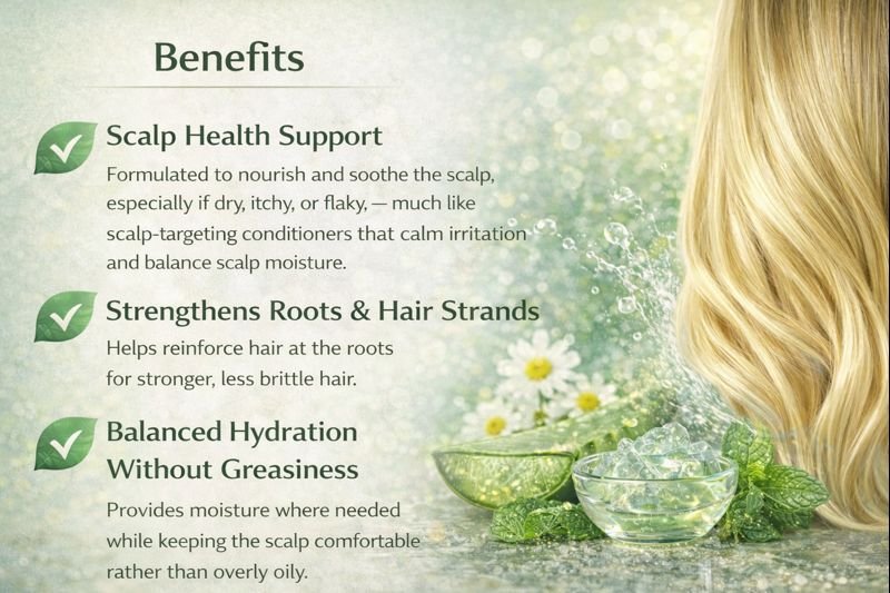 It helps soothe scalp discomfort, reduce dryness, improve hair softness, and make hair easier to manage.