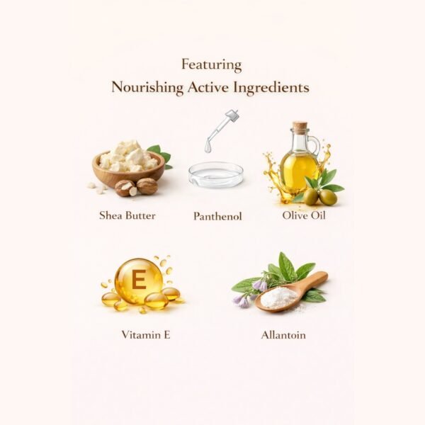 Its smooth, silky texture spreads easily and absorbs quickly without feeling greasy or heavy. The nourishing formula helps improve skin smoothness while strengthening and protecting the skin’s natural moisture barrier, reducing moisture loss and preventing dryness caused by daily exposure.